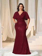 Plus Ruffle Sleeve V Neck Sequin Mermaid Dress