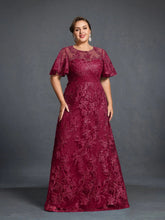 Plus Womens' Floral Embroidered Butterfly Sleeves A Line Formal Evening Dress
