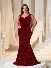 Plus Square Neck Cape Sleeves Sequin Mermaid Dress