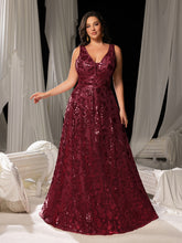 Plus Deep V Sleeveless Sequin Formal Dresses