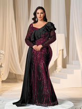 Plus Velvet Evening Gown with Sequin Detail & Mermaid Silhouette – Luxury Bridal Wear for Weddings or High-End Events, 1XL-5XL