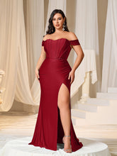 Plus Size Off Shoulder Slit Sequin Mermaid Dress