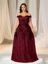 Plus Off Shoulder Graphic Sequin Formal Prom Dress