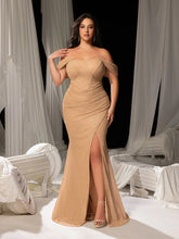 Plus Glitter Off Shoulder Split Mermaid Hem Evening Dress