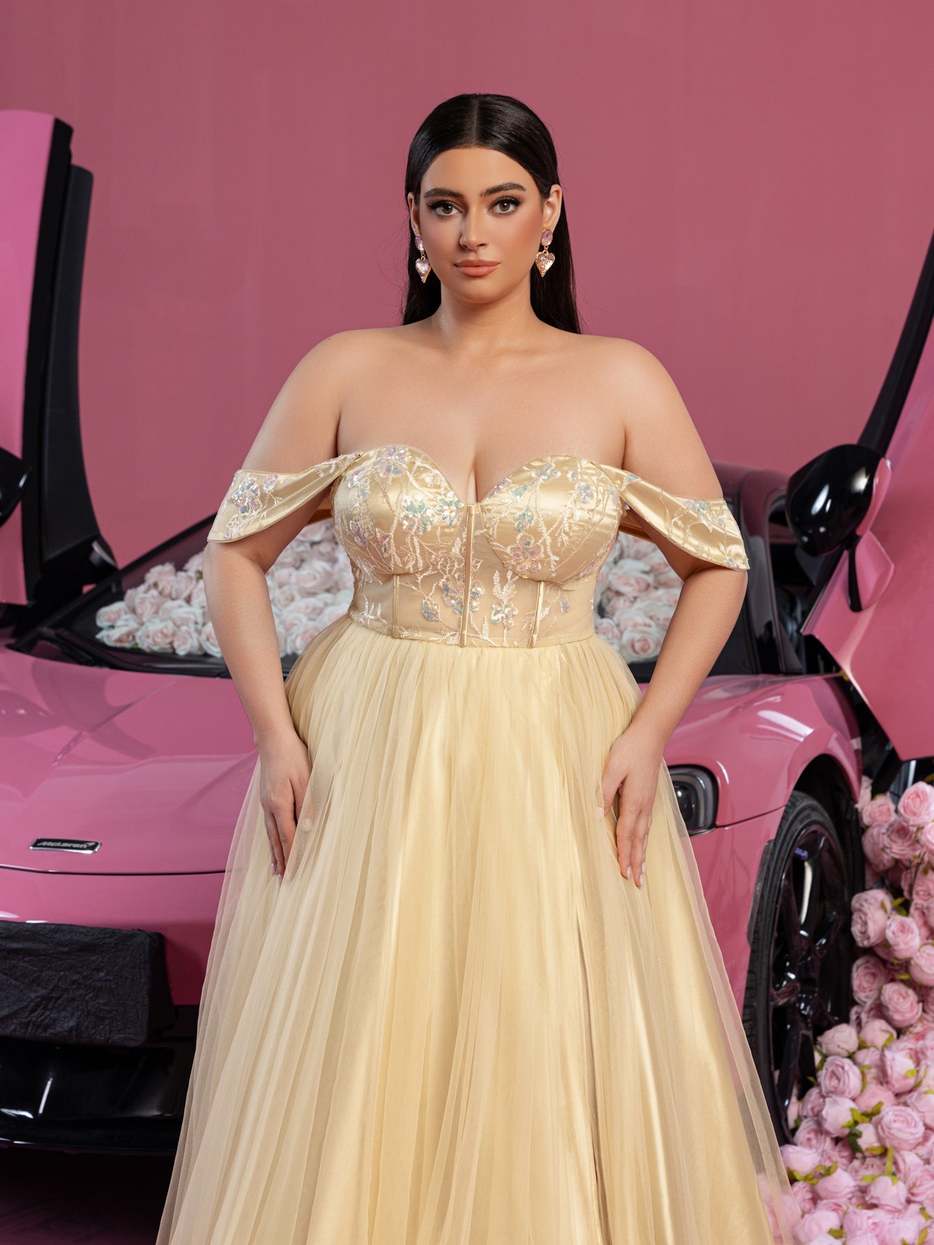 This gown flawlessly blends romantic charm with a daring edge, making it the perfect statement piece for your next special occasion. Shine in this show-stopping design and leave a lasting impression.