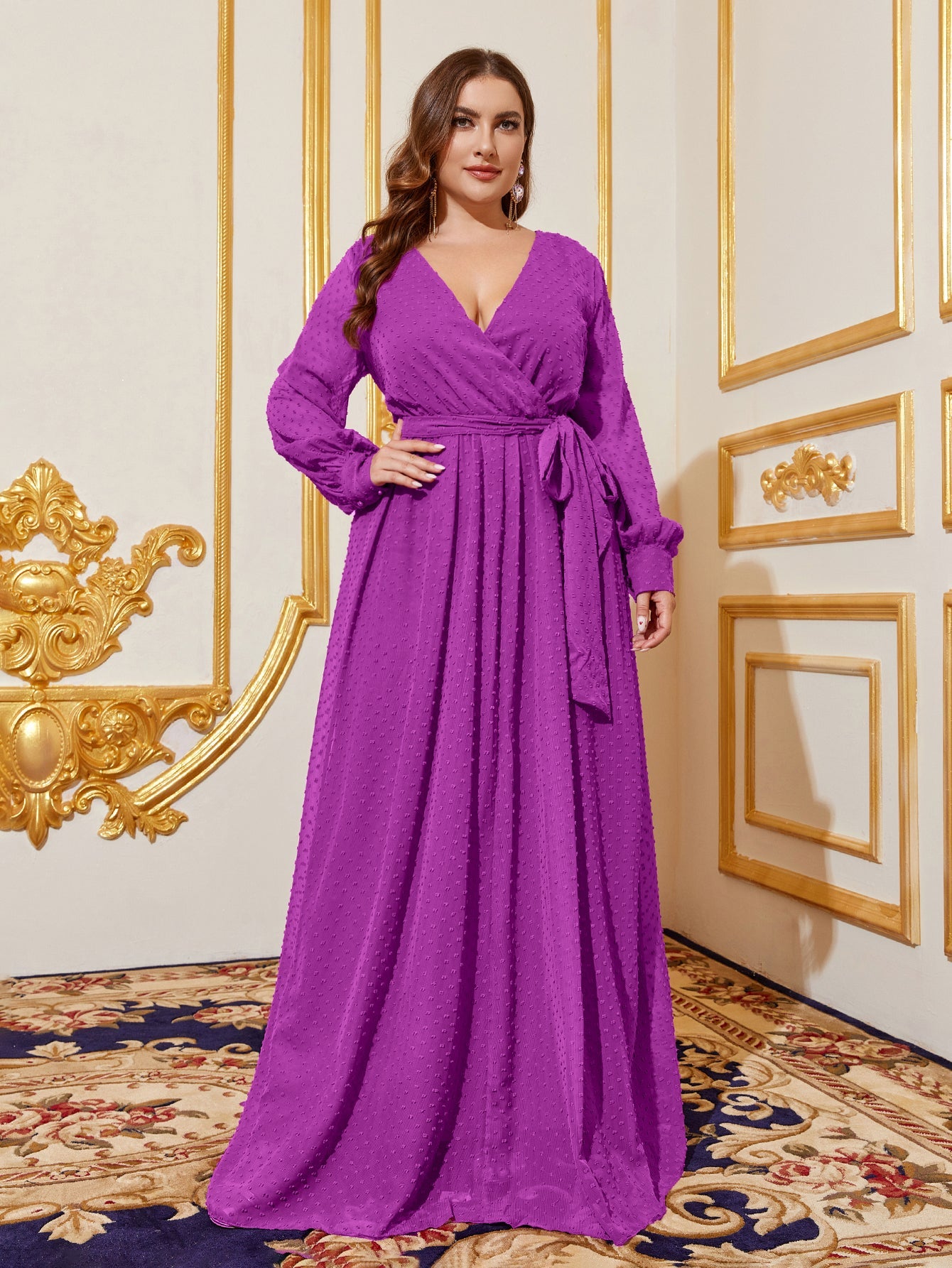 Step into elegance with our stunning wrap-style gown, designed for comfort and charm in every detail. This dress boasts a vibrant hue, making it a standout choice for any occasion. Its soft textured fabric adds depth and interest, complemented by a flattering V-neckline that exudes grace. The wrap design is enhanced with a waist tie, allowing for a personalized fit that highlights your silhouette, while the long, flowing skirt provides a touch of sophistication.