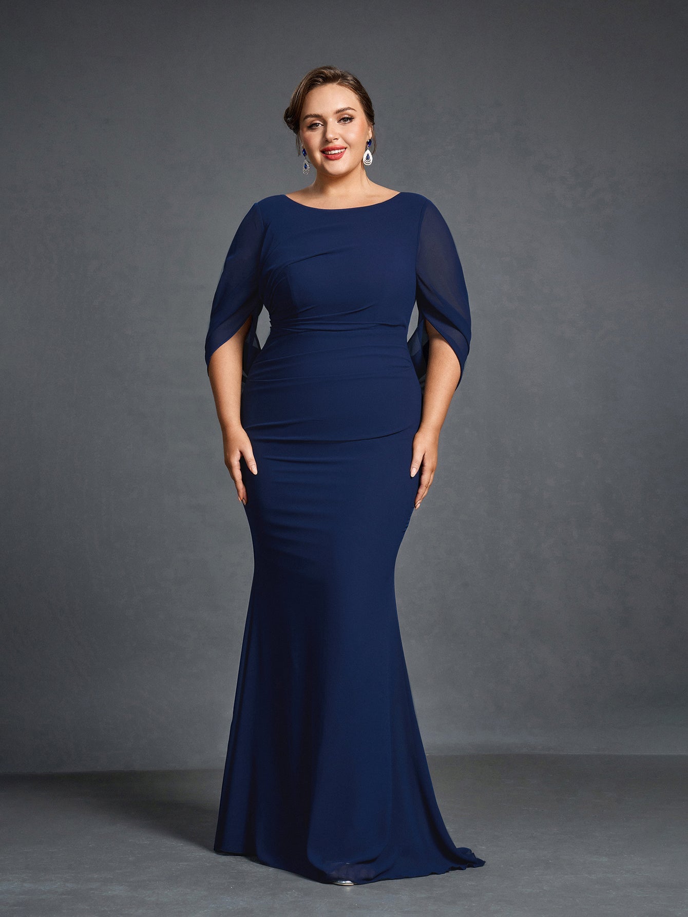 Plus Womens' Draped Back Mermaid Hem Chiffon Formal Dress
